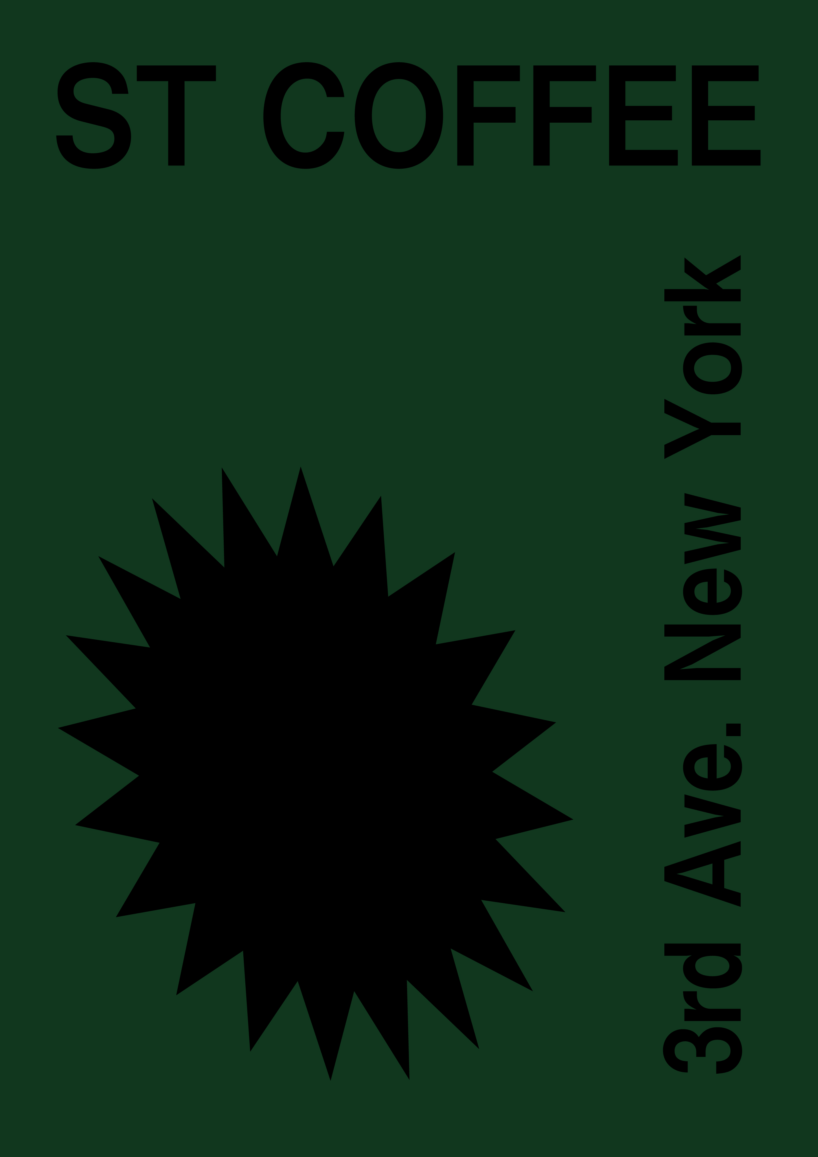 ニューヨークのカフェを想定したポスター、看板、ステッカー、カップデザインを作成。ポップでダークなカラーをブランドイメージカラーとし、コーヒーにこだわる方も、カフェの好きな若い人にも馴染むようなデザインに。