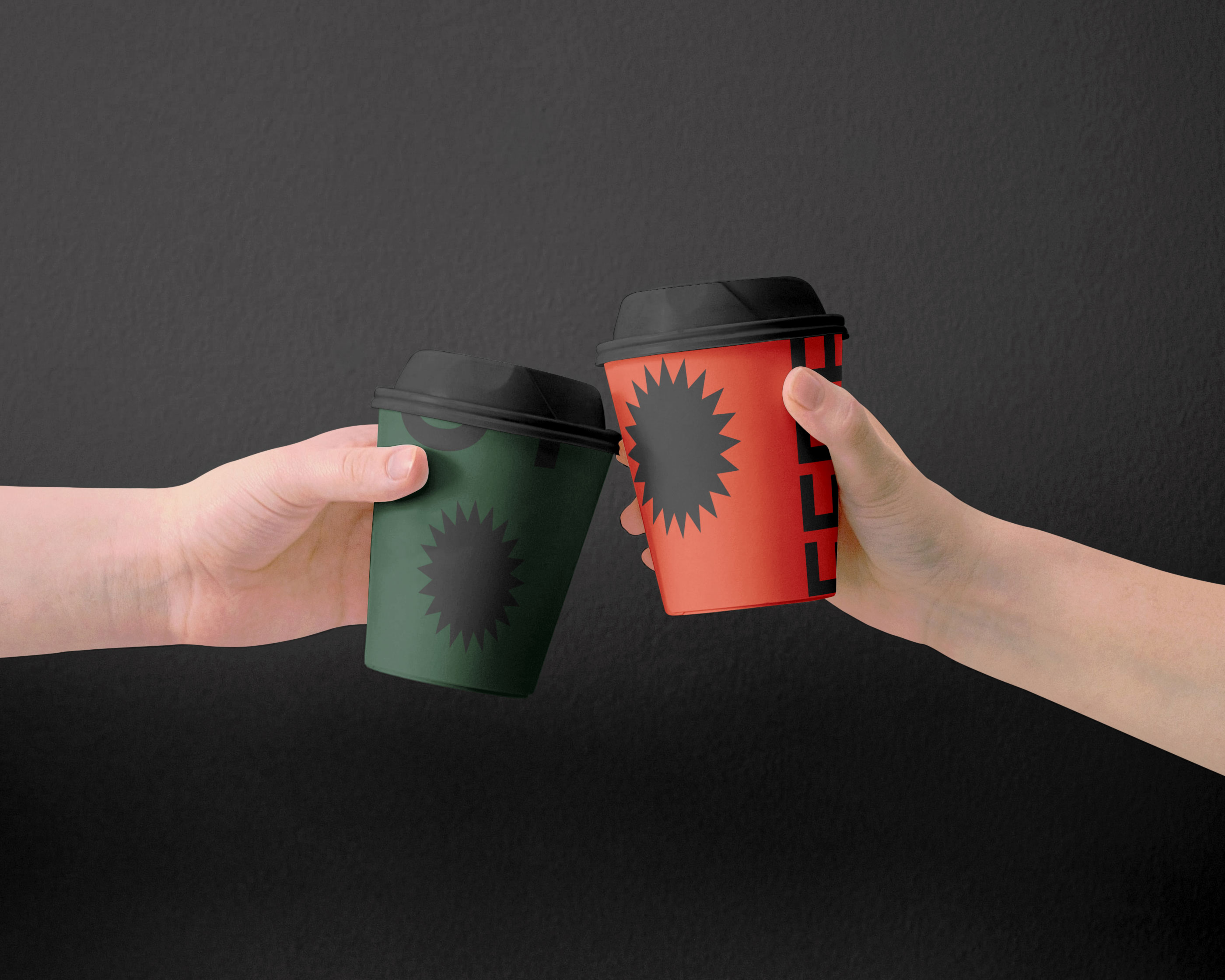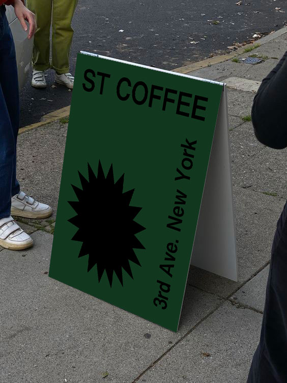 Create posters, signboards, stickers, and cup designs for New York cafes. The pop and dark color is the brand image color, and the design is familiar to both coffee lovers and young people who like cafes.