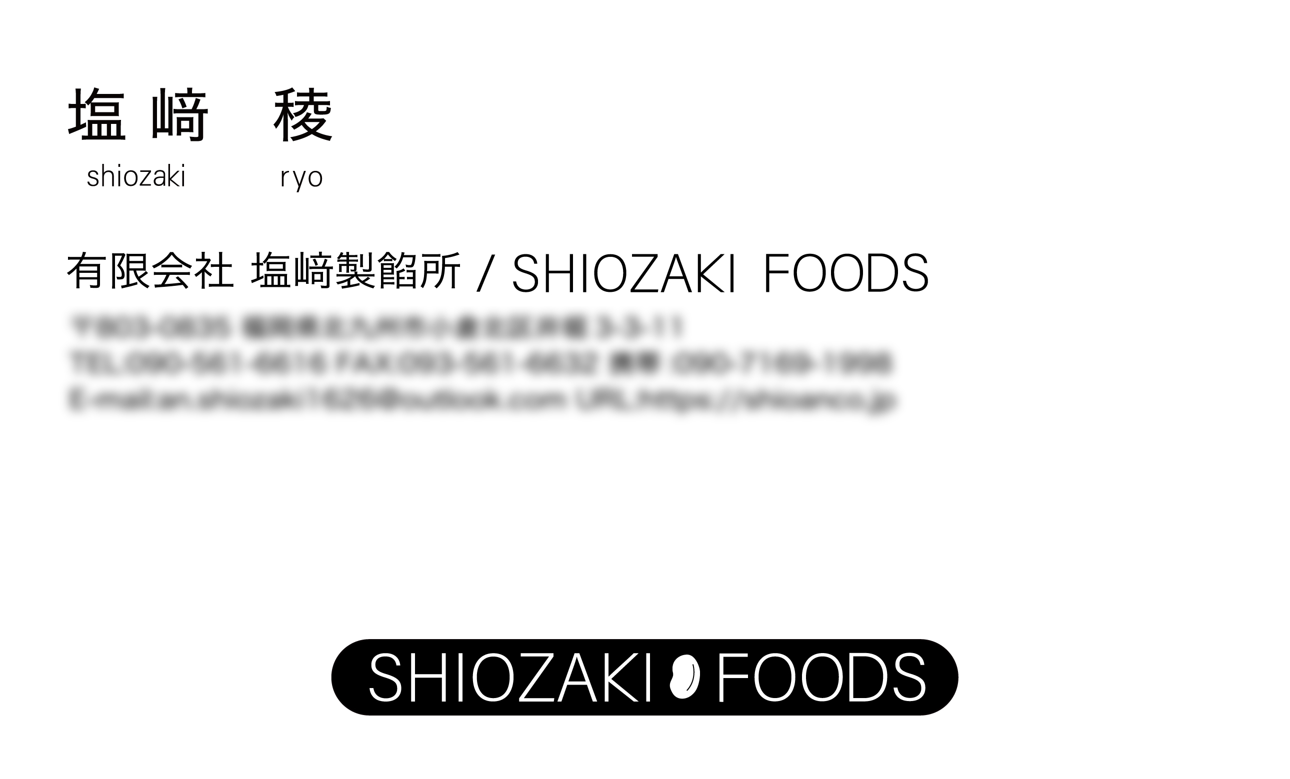 老舗製餡所・有限会社塩﨑製餡所の名刺を作成。 若年層にも和菓子の良さを伝えたいという思いから、キャッチーなデザインに。