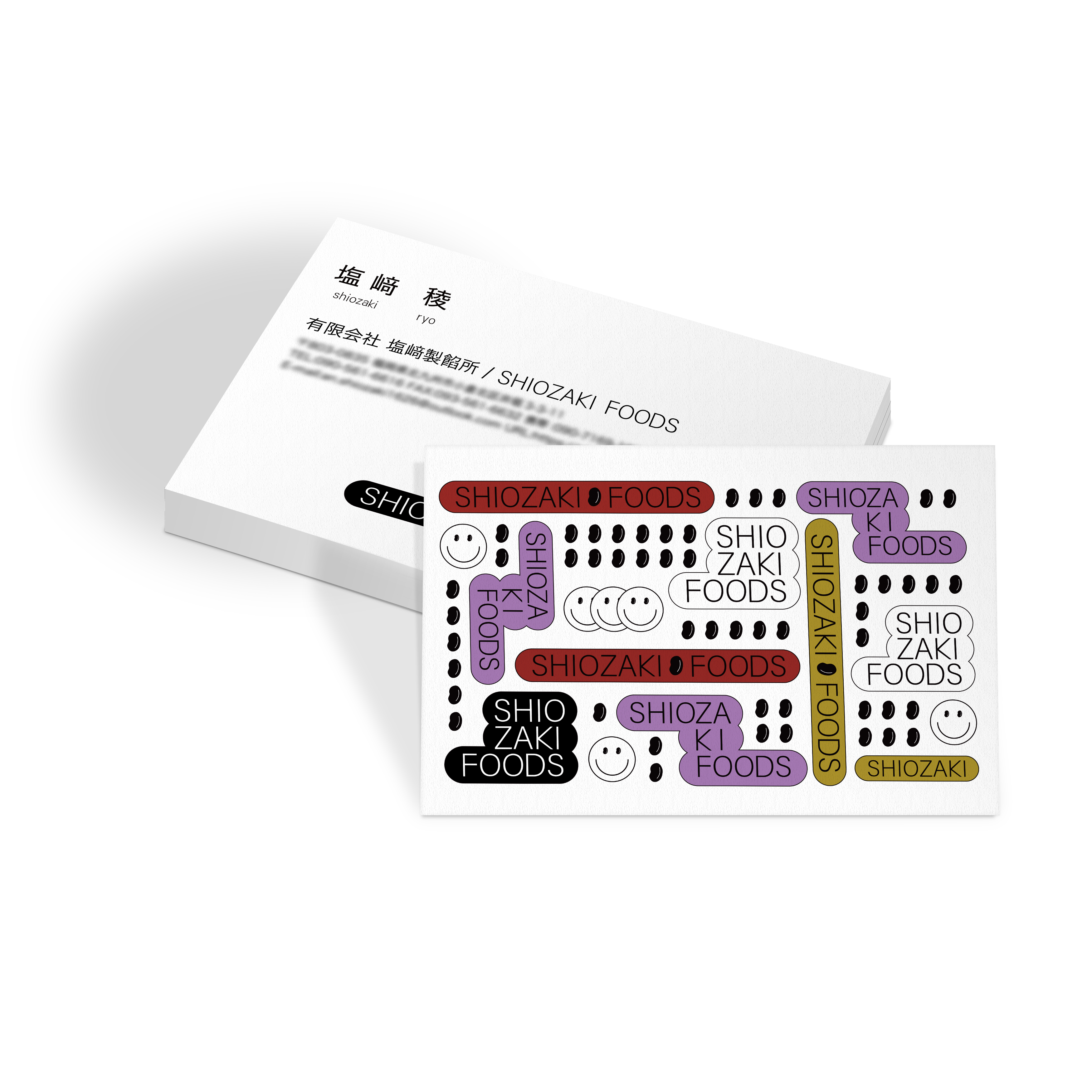 I designed a business card for a long-established bean paste manufacturing company, Shiozaki foods. We wanted to convey the goodness of Japanese sweets to young people, so I created a catchy design.